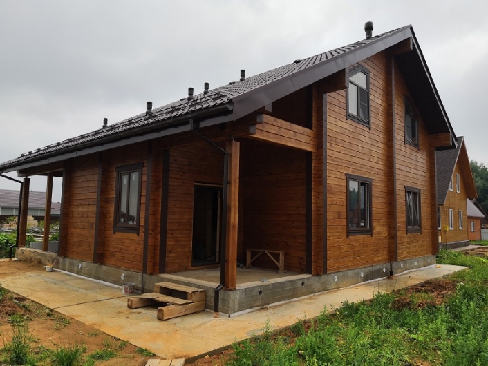 Закончена сборка первого этажа дома из клееного бурса. Проект WD-001
